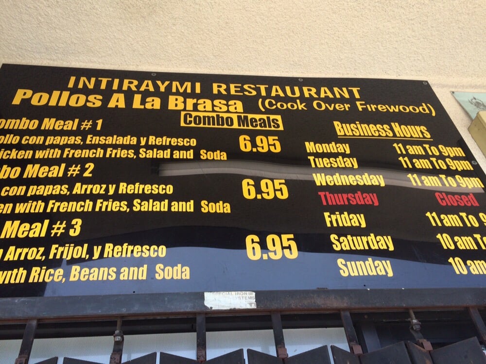 Intiraymi Restaurant Menu